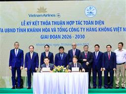 Tổng công ty Hàng không Việt Nam (Vietnam Airlines) và UBND tỉnh Khánh Hòa vừa ký kết Biên bản thỏa thuận hợp tác toàn diện giai đoạn 2026 - 2030, nhằm tăng cường phối hợp phát triển du lịch, hàng không và xúc tiến đầu tư - thương mại. Lễ ký diễn ra với sự tham dự của Phó Thủ tướng Nguyễn Chí Dũng; lãnh đạo tỉnh Khánh Hòa và đại diện lãnh đạo các ban ngành liên quan.