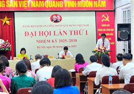 Chiều 06/6/2025, Đảng bộ Cơ quan Công đoàn Xây dựng Việt Nam tổ chức Đại hội lần thứ I, nhiệm kỳ 2025-2030 với chủ đề: “Nâng cao năng lực lãnh đạo và sức chiến đấu của Đảng bộ, phát huy tinh thần Đoàn kết - Đổi mới - Sáng tạo, xây dựng Đảng bộ phát triển vững mạnh, toàn diện”. Đồng chí Vũ Quang Tiến, Ủy viên Ban Chấp hành Đảng ủy, Chánh Văn phòng Đảng ủy Bộ Xây dựng đến dự và phát biểu chỉ đạo Đại hội. Tham dự Đại hội có 41 đảng viên là đảng viên Đảng bộ Cơ quan Công đoàn Xây dựng Việt Nam.