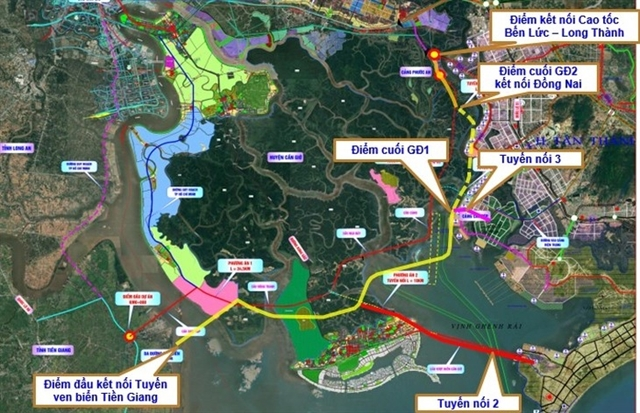 The first option is to build only the main 45.5km section between Tiền Giang Province’s Gò Công Đông District and Phước An Port in Đồng Nai.