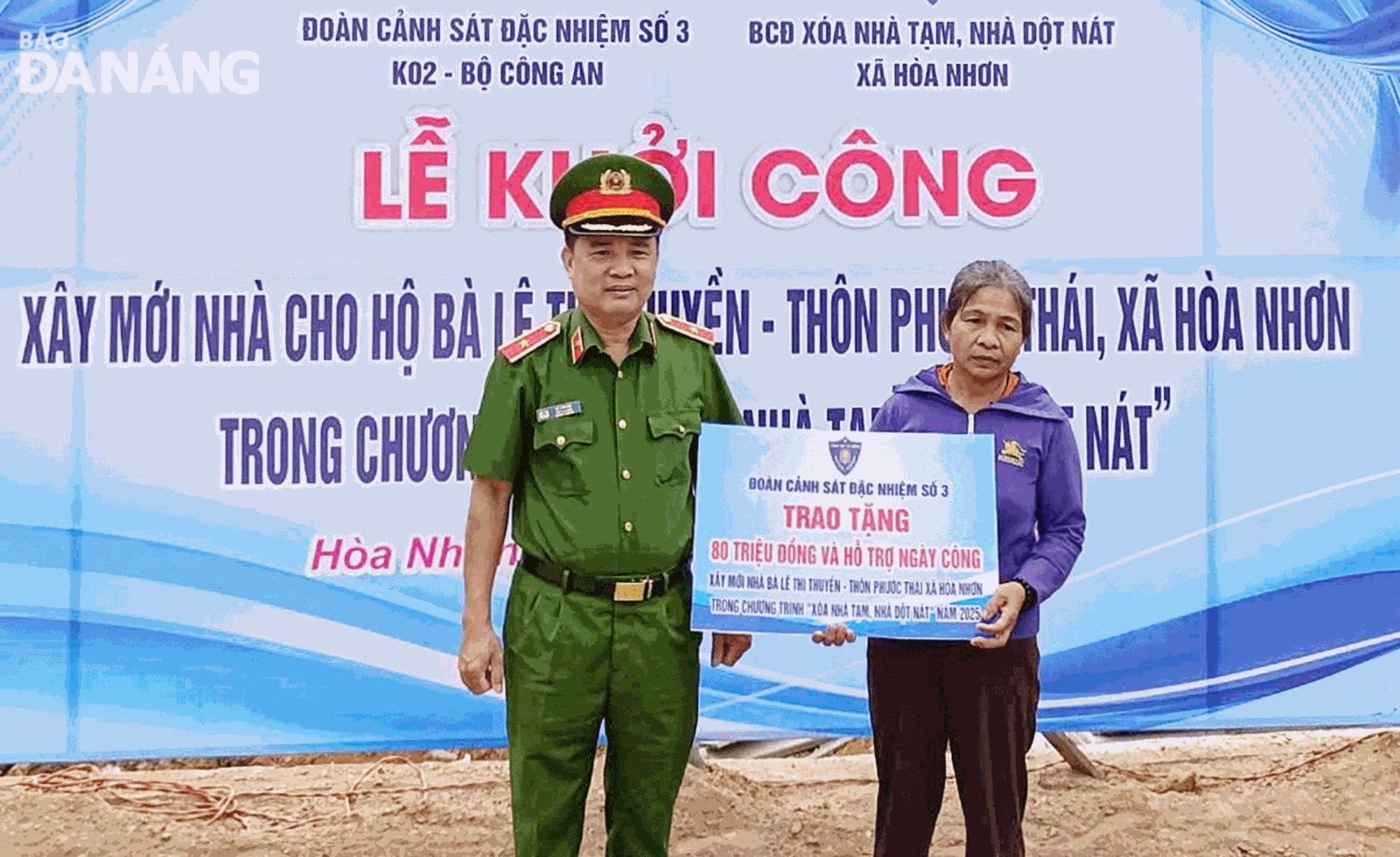 Đoàn Cảnh sát đặc nhiệm số 3, Bộ Công an trao kinh phí và ngày công hỗ trợ xây nhà mới cho hộ nghèo tại xã Hòa Nhơn (huyện Hòa Vang).