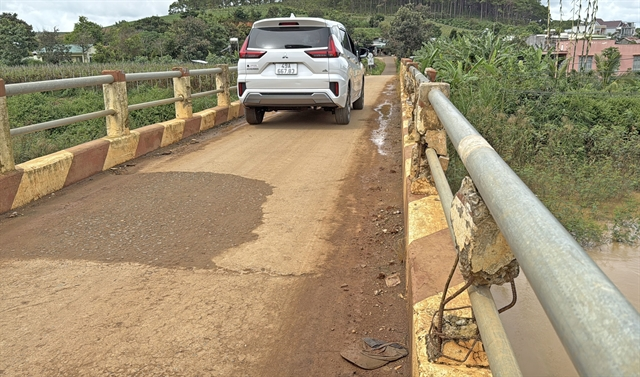 The bridge connecting Đà Thuận Village with Village 16 in Đà Loan Commune, Đức Trọng District, the Central Highlands province of Lâm Đồng is narrow and some items are seriously degraded. — VNA/VNS Photo Nguyễn Dũng