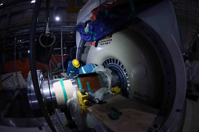 Engineers and workers are installing turbines at the Quảng Trạch 1 Thermal Power Plant project.