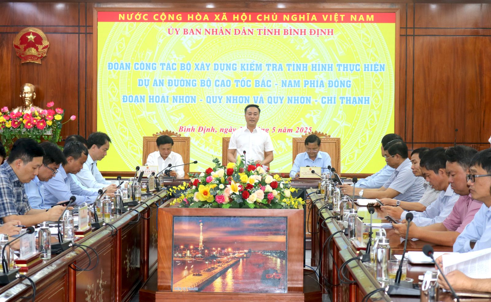 Mới đây, tại trụ sở UBND tỉnh Bình Định, các đồng chí: Nguyễn Việt Hùng - Thứ trưởng Bộ Xây dựng; Nguyễn Tự Công Hoàng - Phó Chủ tịch UBND tỉnh Bình Định; Lê Tấn Hổ - Phó Chủ tịch Thường trực UBND tỉnh Phú Yên đã chủ trì cuộc họp đánh giá tình hình thực hiện các Dự án thành phần đoạn Hoài Nhơn - Quy Nhơn và Quy Nhơn - Chí Thạnh thuộc Dự án xây dựng công trình đường bộ cao tốc Bắc - Nam phía Đông, giai đoạn 2021 - 2025.