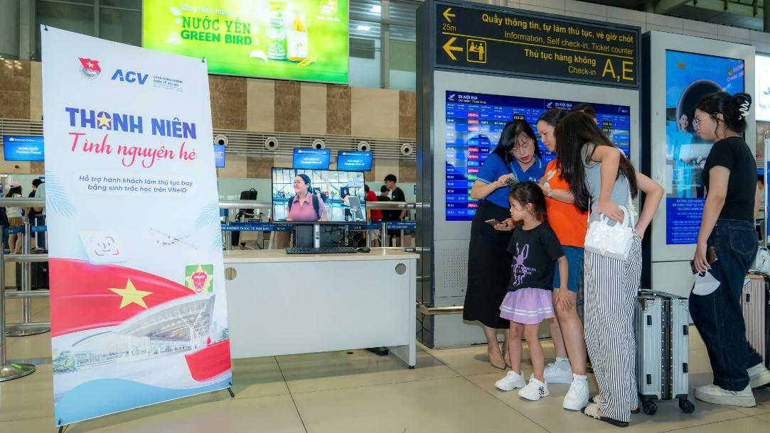 Từ ngày 23/6 đến ngày 10/7/2025, Đoàn Thanh niên Cảng HKQT Nội Bài triển khai chiến dịch hỗ trợ hành khách sử dụng công nghệ sinh trắc học trên nền tảng VNeID để làm thủ tục đi máy bay.