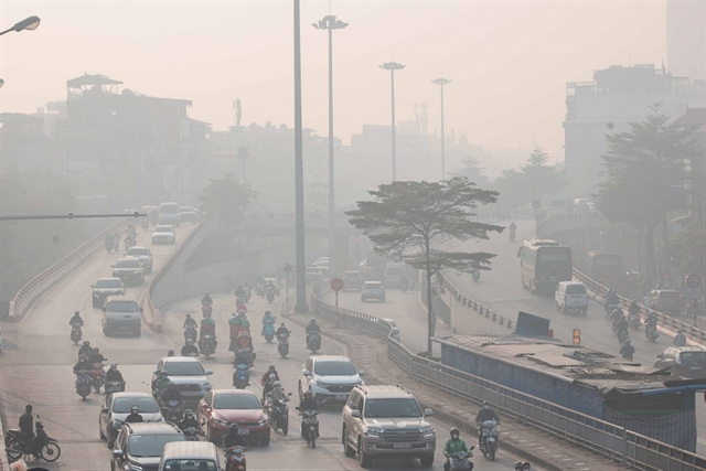 Chương Dương Bridge in central Hà Nội on the morning of January 2, 2025. Air quality was reported with PM2.5 levels reaching 208.5 µg/m³, 41.7 times higher than the World Health Organisation's recommended guideline. — VNA/VNS Photo Hoàng Hiếu