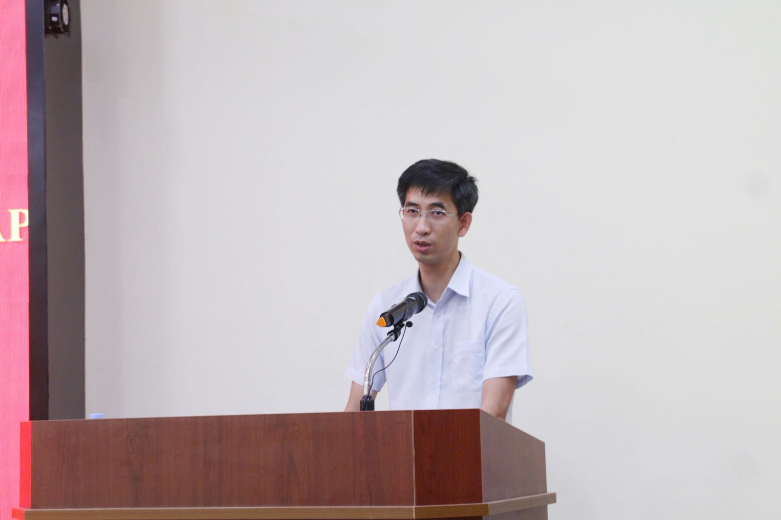 TS. Lưu Đức Minh, Phó Giám đốc Học viện Chiến lược, bồi dưỡng cán bộ xây dựng phát biểu tại lễ khai giảng