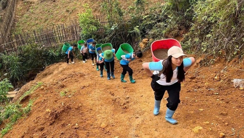 Hội viên phụ nữ tỉnh Lào Cai góp ngày công, địu cát vượt đường núi hỗ trợ xây nhà mới ở địa bàn vùng cao, giao thông khó khăn