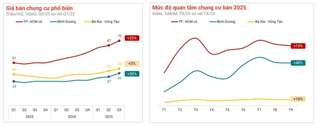 Batdongsan.com.vn’s Q3 data shows average listing prices climbed to VNĐ99 million per square metre, the highest in two years, while property searches reached record highs, reflecting expectations of a new growth cycle.
