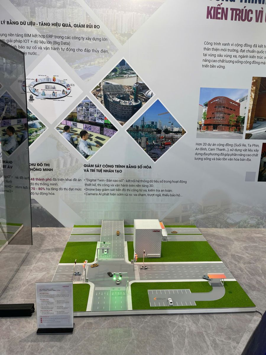 In the exhibition area on construction technology, under the theme “Technological Transformation – Driving force to elevate Vietnam’s Construction Industry,” the Department for Roads of Vietnam focuses on highlighting sectors that have achieved significant breakthroughs through the application of modern science and technology. In key transportation projects, many advanced technologies such as pavement recycling, modern bridge and tunnel construction, Building Information Modeling (BIM), and Intelligent Transportation Systems (ITS) have been widely applied, improving quality, shortening timelines, and optimizing costs. At the same time, digital platforms such as GIS, IoT, and AI have been integrated into infrastructure management, real-time construction monitoring, and intelligent traffic forecasting and regulation, gradually forming a digitalized, green, and sustainable transportation system.
