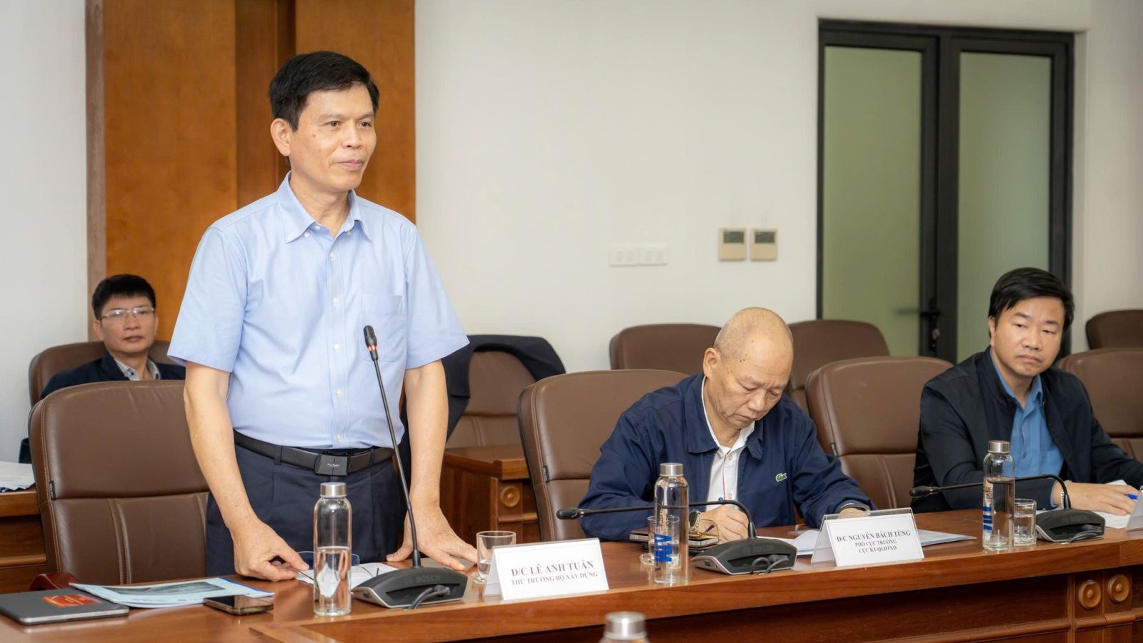 Deputy Minister Le Anh Tuan spoke at the progress inspection of the T2 Passenger Terminal Expansion Project at Noi Bai International Airport. Photo: Noi Bai International Airport.
