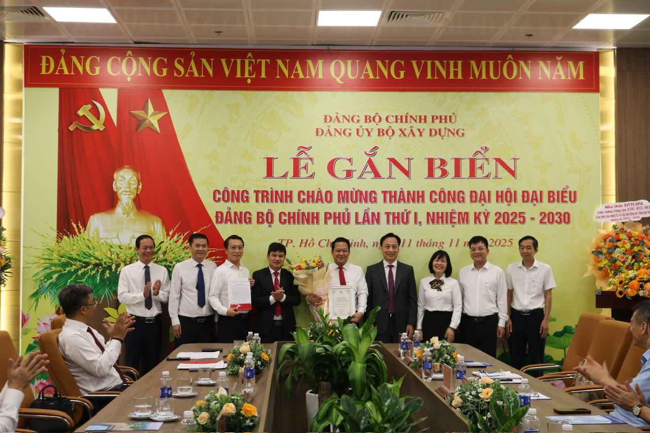 In the exciting atmosphere of competing to achieve achievements to welcome the 14th National Party Congress, the Party Committee of the Ministry of Construction solemnly held a ceremony to attach a plaque to the project to welcome the success of the 1st Government Party Congress, term 2025-2030, in Ho Chi Minh City, on November 11.