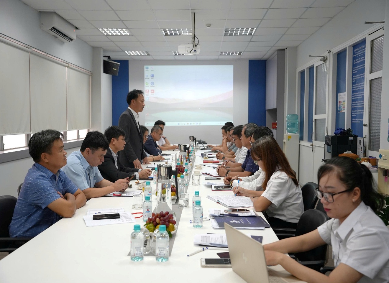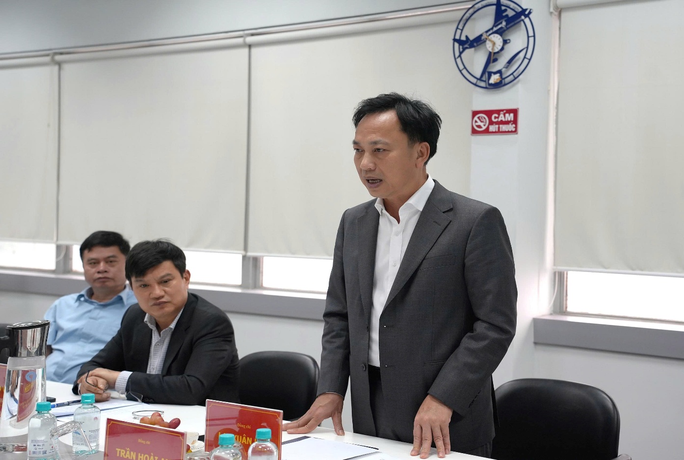 On November 12, in Ho Chi Minh City, the working delegation led by Comrade Lai Xuan Lam, Deputy Secretary of the Government Party Committee and the Standing representative of the Party Committee of the Ministry of Construction had a working session with the Party Committee of the Vietnam Aviation Academy to grasp the situation in the leadership and direction of the implementation of political tasks and Party building work.