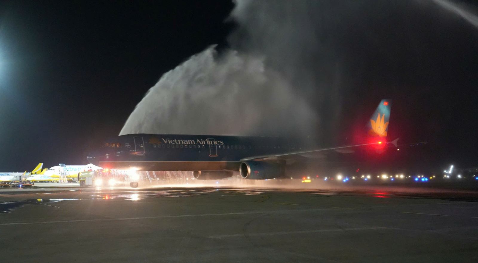 The inaugural flight of the HAN-CEB direct route was welcomed with a water cannon ceremony.