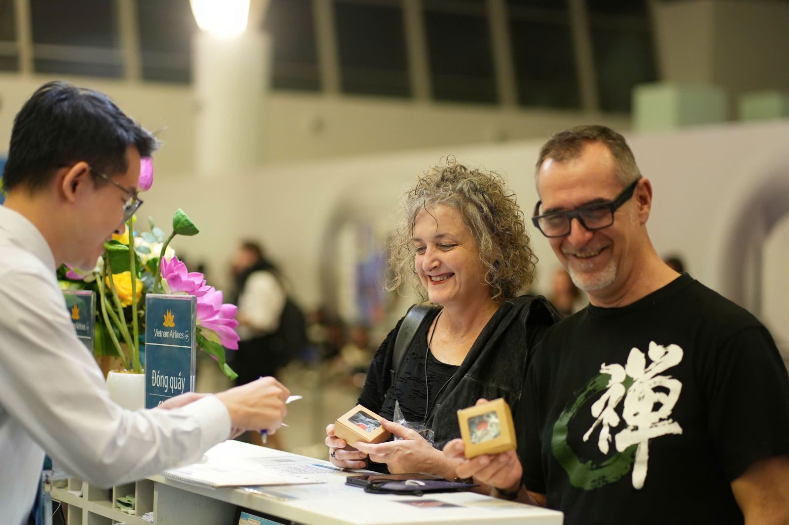 On the occasion of the opening of the new route, Vietnam Airlines organized celebratory activities at both airports, giving souvenirs to passengers on the first flight.