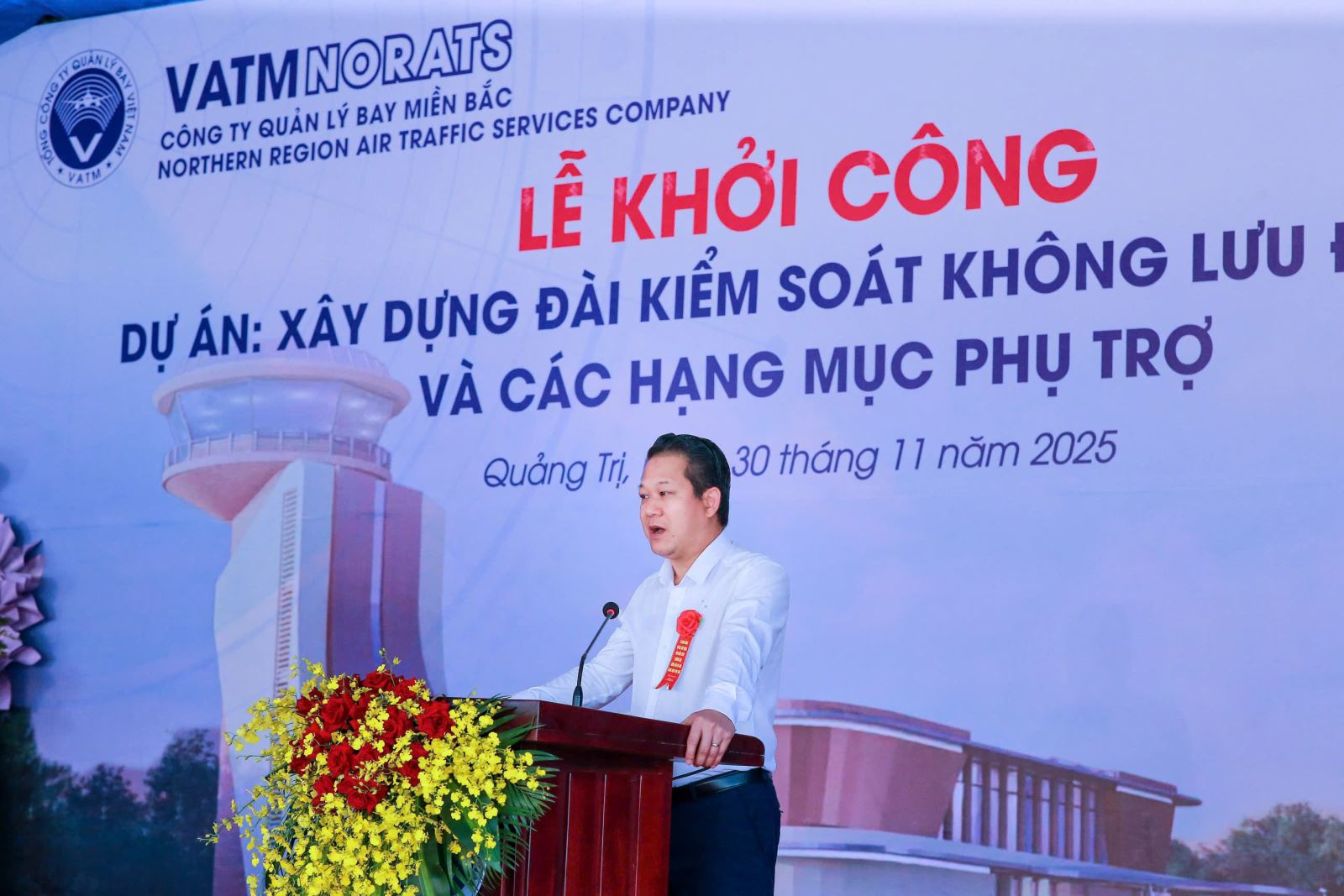 Speaking at the ceremony, Party Secretary and Chairman of the Board of Members of Vietnam Air Traffic Management Corporation Le Hoang Minh expressed his gratitude to the leaders of the Departments, Boards and Branches of Quang Tri province for their support, facilitation and constant support for the project of the Corporation; at the same time, he highly appreciated, acknowledged and commended the Northern Air Traffic Management Company (the unit assigned as the investor) for its efforts to coordinate and implement the work to meet the project's commencement time and ensure the inauguration on time as assigned.