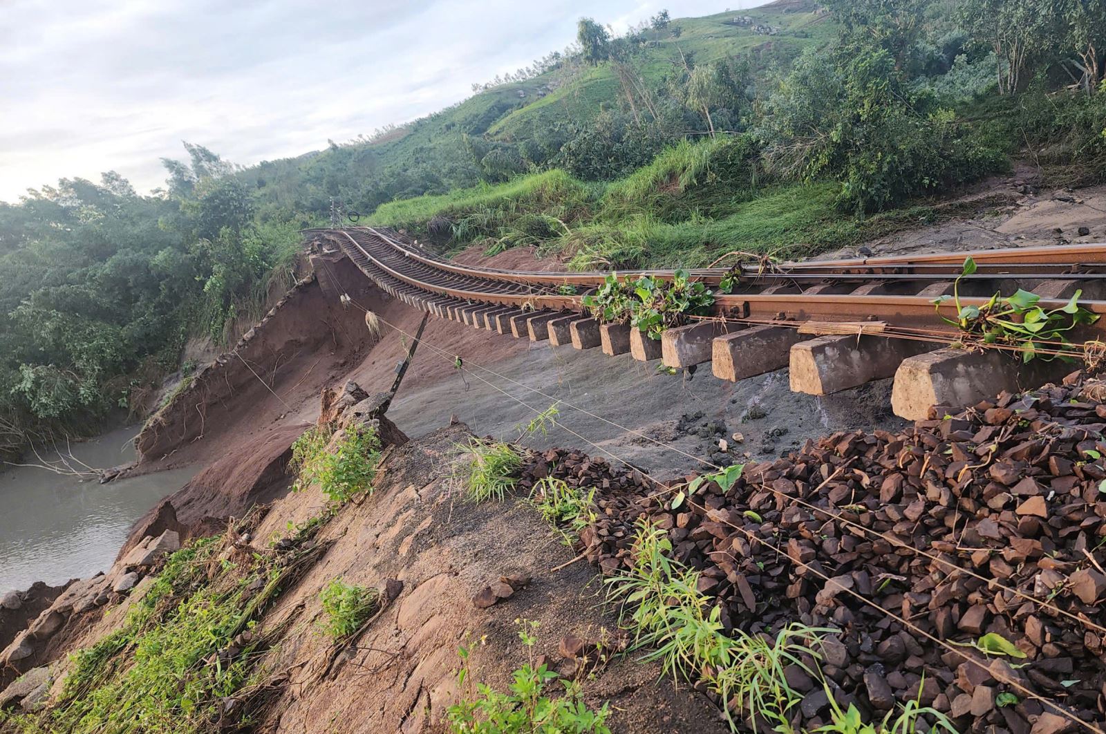 Railway tracks eroded and suspended due to flooding