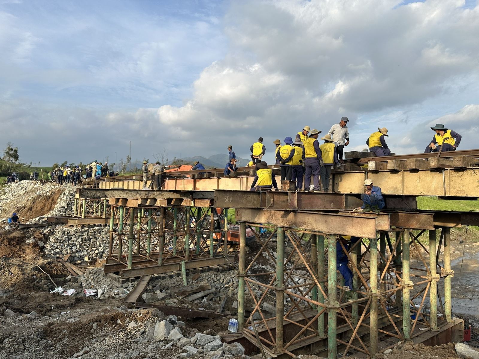 Construction work to repair the roadbed had been washed away.