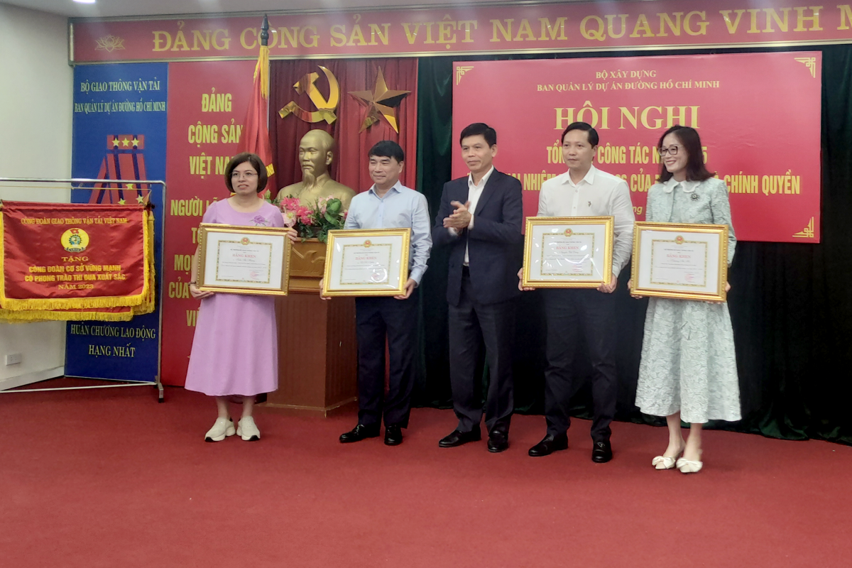Thứ trưởng Lê Anh Tuấn tặng Bằng khen của Bộ trưởng Bộ GTVT (nay là Bộ Xây dựng) cho các cá nhân xuất sắc của Ban QLDA đường Hồ Chí Minh