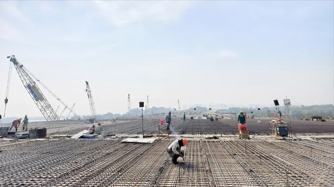 Công nhân, kỹ sư đang thi công gói thầu XL5, dự án đường Vành đai 3