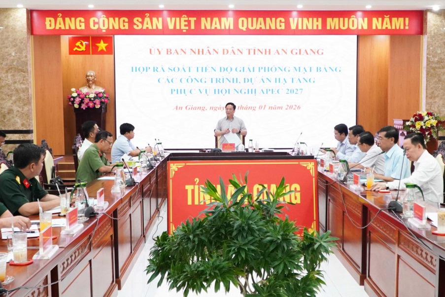 Vừa qua, Ủy viên Ban Chấp hành Trung ương Đảng, Phó Bí thư Tỉnh ủy, Chủ tịch UBND tỉnh An Giang Hồ Văn Mừng chủ trì cuộc họp rà soát tiến độ giải phóng mặt bằng các công trình, dự án hạ tầng phục vụ Hội nghị APEC 2027.