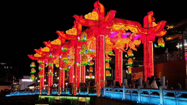 Hình ảnh sông Tần Hoài về đêm.