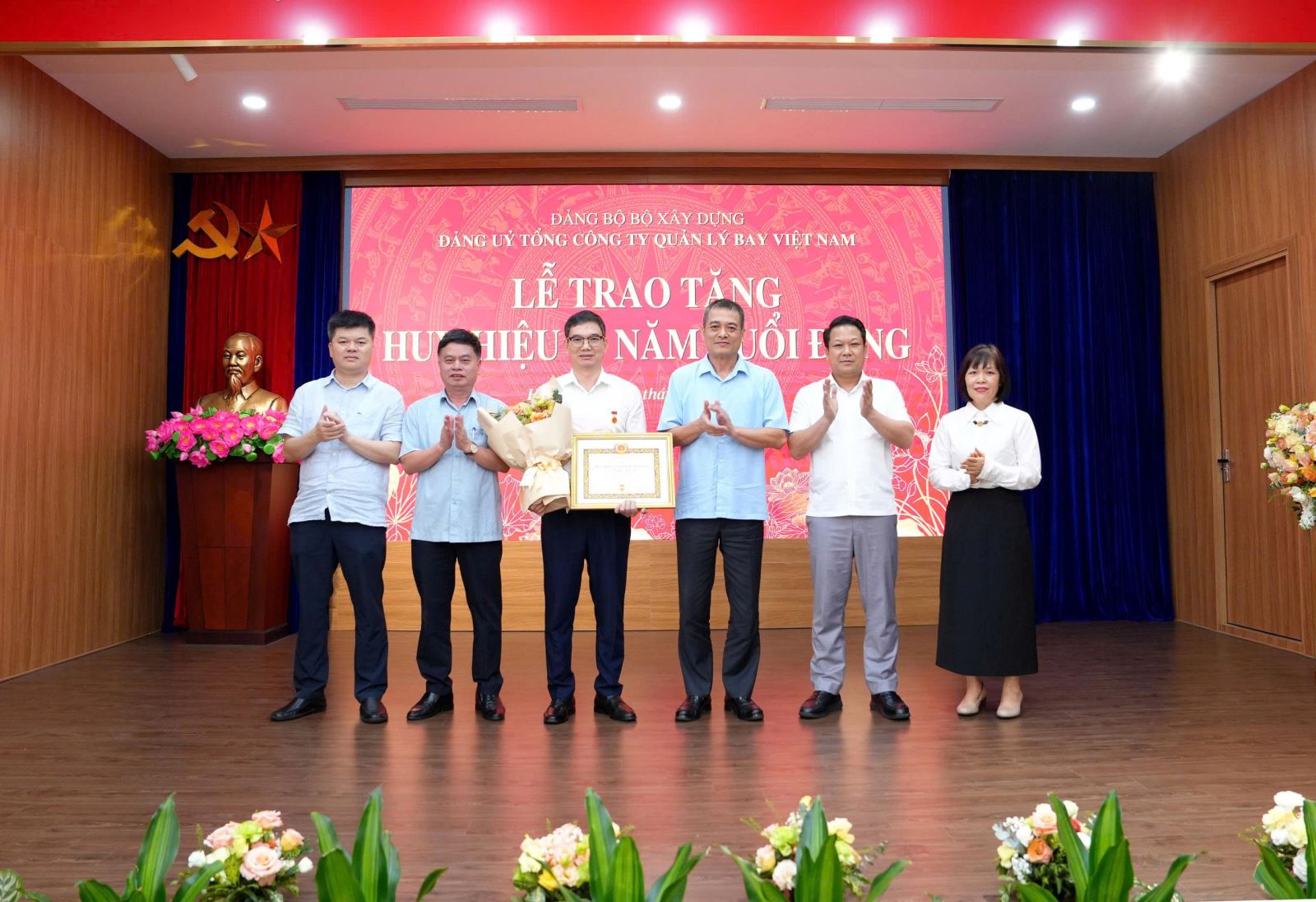 Các đồng chí Lãnh đạo Bộ Xây dựng, Tổng công ty trao tặng Huy hiệu 30 năm tuổi Đảng cho đồng chí Nguyễn Văn Tiến - Ủy viên BCH Đảng bộ, Phó Tổng Giám đốc.