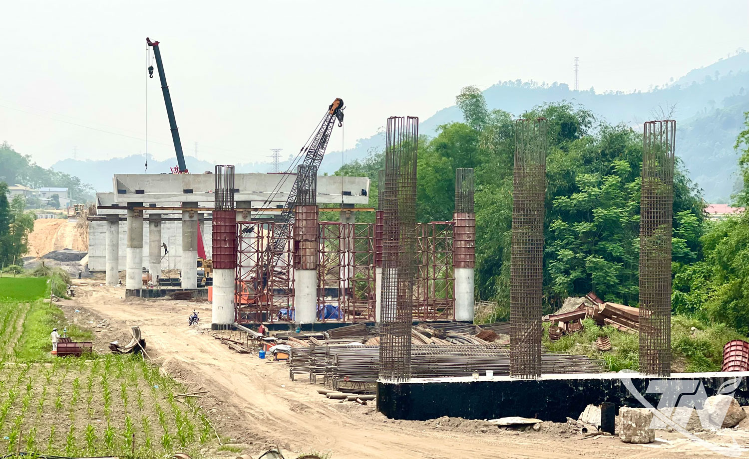 Trong tổng thể Dự án, nhiều hạng mục cầu quy mô lớn và kỹ thuật phức tạp đang được ưu tiên đẩy nhanh tiến độ. Tiêu biểu như cầu Thanh Bình dài 400m và cầu Khuổi Quận dài 300m, giữ vai trò quan trọng trong kết nối toàn tuyến. Tại các vị trí này, nhà thầu bố trí nhiều mũi thi công song song, tranh thủ thời tiết thuận lợi để triển khai đồng thời các hạng mục nền móng, thân trụ và dầm cầu.