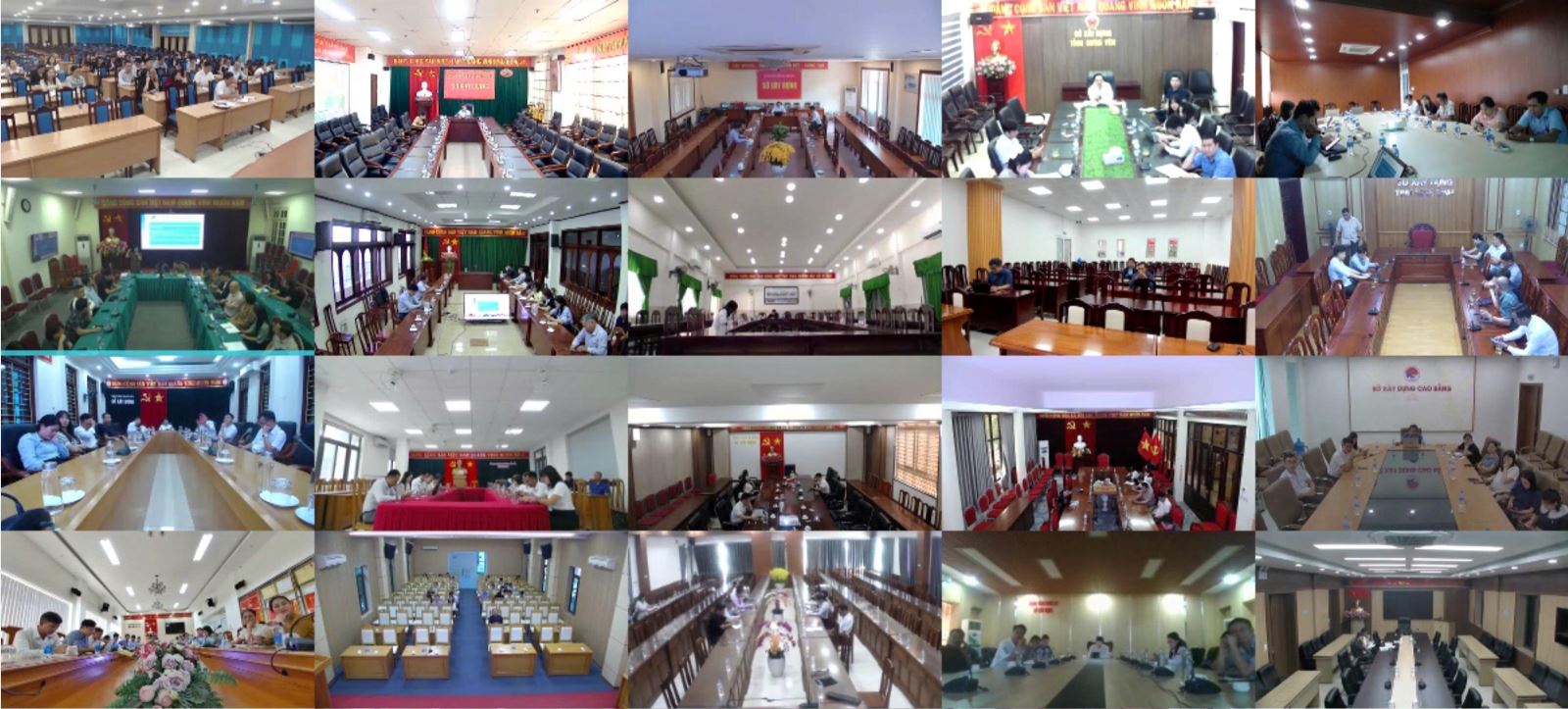 Đại biểu tham dự trực tuyến tại các điểm cầu Sở Xây dựng 34 tỉnh, thành phố
