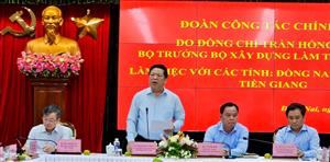 Sáng 20/3, Đoàn công tác của Chính phủ do Bộ trưởng Bộ Xây dựng Trần Hồng Minh dẫn đầu đã có buổi làm việc với lãnh đạo 3 tỉnh Đồng Nai, Bình Dương và Tiền Giang để đánh giá tình hình triển khai các kịch bản tăng trưởng, xác định các thách thức và đưa ra giải pháp thực hiện mục tiêu phát triển kinh tế - xã hội năm 2025.
