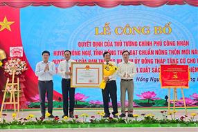 Ngày 28/6/2025, tại Đồng Tháp diễn ra Lễ công bố quyết định của Thủ tướng Chính phủ công nhận huyện Hồng Ngự đạt chuẩn nông thôn mới năm 2024 và Quyết định của Ban Thường vụ Tỉnh ủy tặng cờ cho Đảng bộ huyện Hồng Ngự đạt thành tích hoàn thành xuất sắc nhiệm vụ nhiệm kỳ 2020 - 2025.