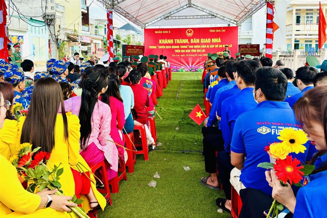 Ngày 4/1, Bộ Tư lệnh Quân khu 5 phối hợp với UBND tỉnh Gia Lai tổ chức bàn giao nhà trong “Chiến dịch Quang Trung” cho gia đình bà Lê Thị Hòa (thôn An Hòa 2, xã Tuy Phước Tây) và tặng quà cho 20 gia đình khác được Bộ CHQS tỉnh Gia Lai hỗ trợ xây dựng lại nhà mới và bàn giao trong đợt 1.