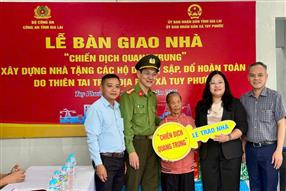 Chiều 10/1, tại xã Tây Hòa, Công an tỉnh Đắk Lắk phối hợp với chính quyền địa phương tổ chức bàn giao nhà mới cho 15 hộ gia đình có nhà bị sập đổ hoàn toàn sau đợt mưa lũ vừa qua. Tham dự có đồng chí Trần Hữu Thế, Ủy viên Ban Thường vụ Tỉnh ủy, Phó Chủ tịch Thường trực Ủy ban MTTQ Việt Nam tỉnh; Thiếu tướng Phan Thanh Tám, Ủy viên Ban Thường vụ Tỉnh ủy, Giám đốc Công an tỉnh; Đào Mỹ, Phó Chủ tịch UBND tỉnh cùng các đơn vị và đại biểu liên quan.