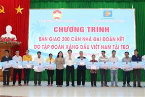 Ngày 17/5/2025, tại huyện Giồng Trôm, Ban Thường trực Ủy ban MTTQ Việt Nam tỉnh Bến Tre phối hợp tổ chức Chương trình bàn giao 200 căn nhà đại đoàn kết cho hộ nghèo khó khăn về nhà ở do Tập đoàn Xăng dầu Việt Nam tài trợ.