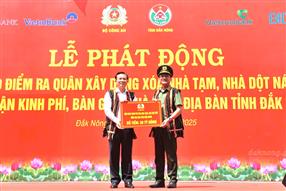Sáng 12/5, tại bon Ting Wel Đơm, xã Đắk Nia, thành phố Gia Nghĩa, Bộ Công an phối hợp với tỉnh Đắk Nông tổ chức Lễ phát động cao điểm ra quân xây dựng xoá nhà tạm, nhà dột nát, tiếp nhận kinh phí, bàn giao nhà mẫu trên địa bàn tỉnh Đắk Nông.