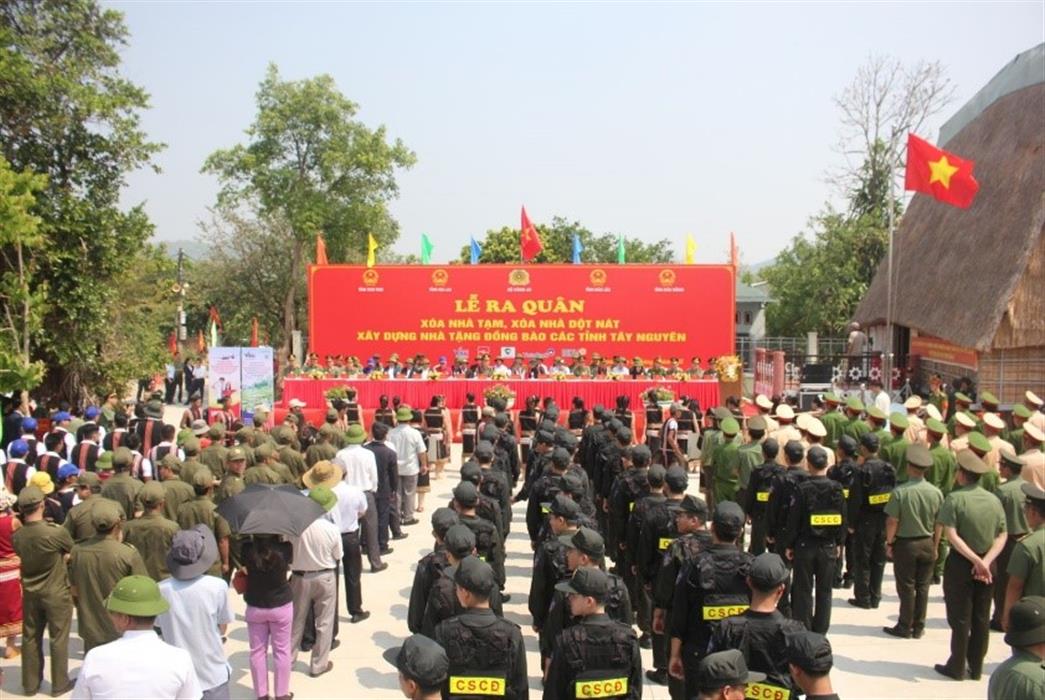 Vừa qua, tại Thành phố Kon Tum, Bộ Công an phối hợp với Ban Chỉ đạo triển khai xóa nhà tạm, nhà dột nát tỉnh Kon Tum tổ chức Lễ ra quân đồng loạt xoá nhà tạm, nhà dột nát, xây dựng nhà cho đồng bào các tỉnh Tây Nguyên, trao tặng nhà mới và bàn giao kinh phí hỗ trợ.