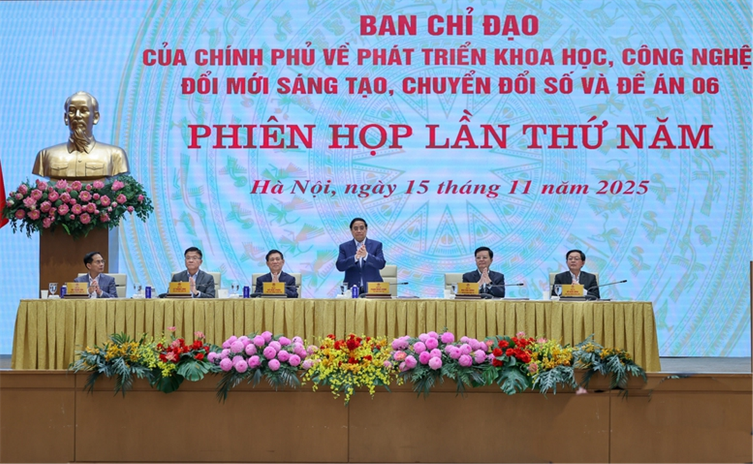 Sáng 15/11, tại Trụ sở Chính phủ, Thủ tướng Chính phủ Phạm Minh Chính, Trưởng Ban Chỉ đạo của Chính phủ về phát triển khoa học công nghệ, đổi mới sáng tạo, chuyển đổi số và Đề án 06 (Ban Chỉ đạo), chủ trì phiên họp lần thứ 5 của Ban Chỉ đạo.