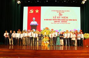 Chiều 28/8, Sở Xây dựng Cao Bằng tổ chức Lễ kỷ niệm 80 năm Ngày truyền thống ngành Giao thông vận tải (GTVT) (28/8/1945 - 28/8/2025). Tham dự có các đồng chí: Lê Hải Hòa, Phó Bí thư Tỉnh ủy, Chủ tịch UBND tỉnh; Hoàng Văn Thạch, Tỉnh ủy viên, Phó Chủ tịch UBND tỉnh; Bế Minh Đức, Tỉnh ủy viên, Phó trưởng đoàn chuyên trách Đoàn ĐBQH tỉnh; lãnh đạo một số sở, ban, ngành, địa phương; lãnh đạo, nguyên lãnh đạo Sở GTVT, Sở Xây dựng qua các thời kỳ; các doanh nghiêp, hợp tác xã hoạt động trong lĩnh vực xây dựng, giao thông trên địa bàn tỉnh.