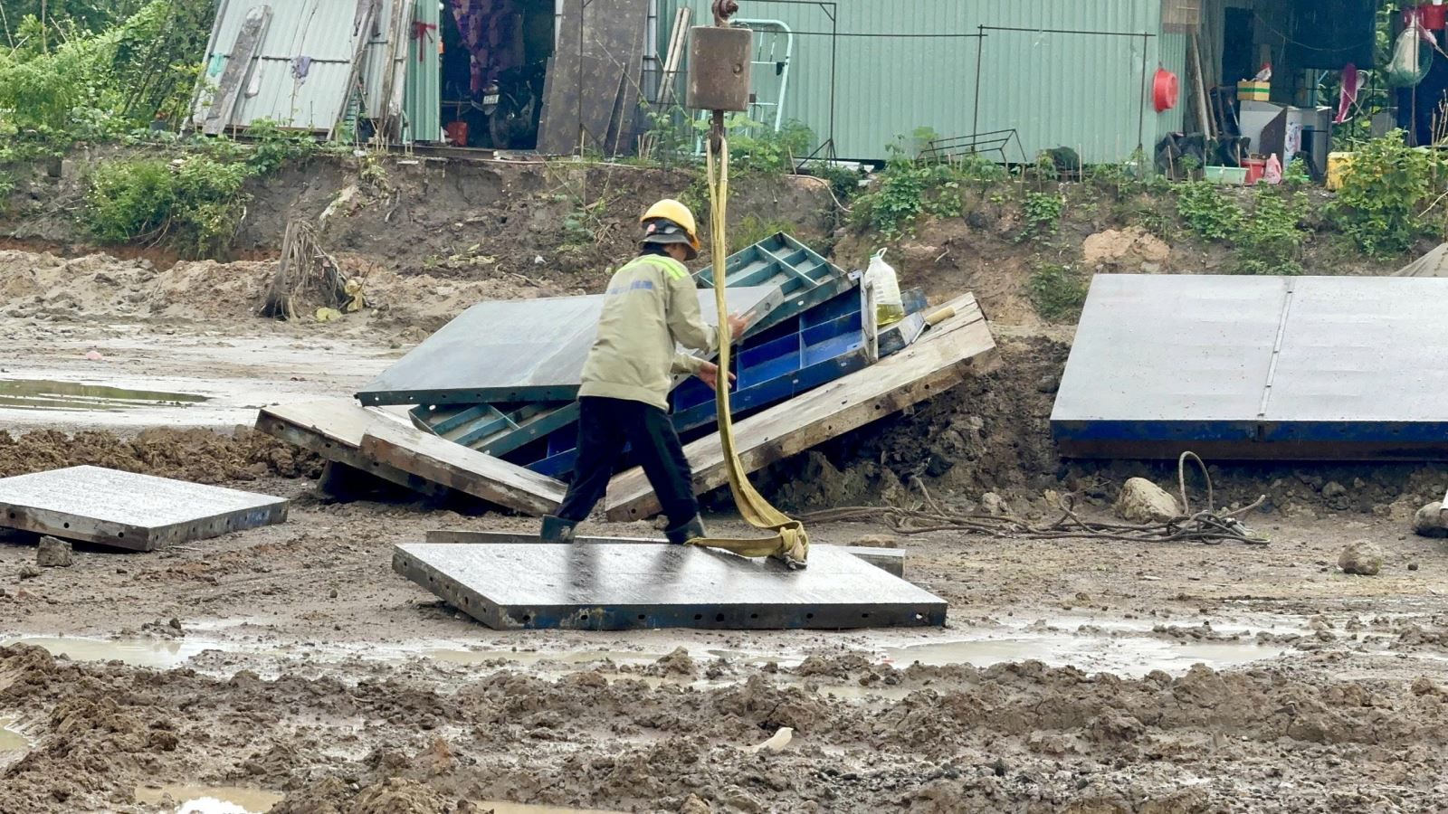 "Việc gì làm được thì tranh thủ, không để công trường bị mưa làm ảnh hưởng quá nhiều", anh Thảo nói.