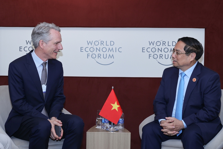 Nhân dịp dự Hội nghị thường niên các nhà tiên phong lần thứ 16 của Diễn đàn Kinh tế thế giới và làm việc tại Trung Quốc, ngày 25/6, tại thành phố Thiên Tân, Thủ tướng Chính phủ Phạm Minh Chính đã tiếp lãnh đạo Tập đoàn Siemens (Đức).