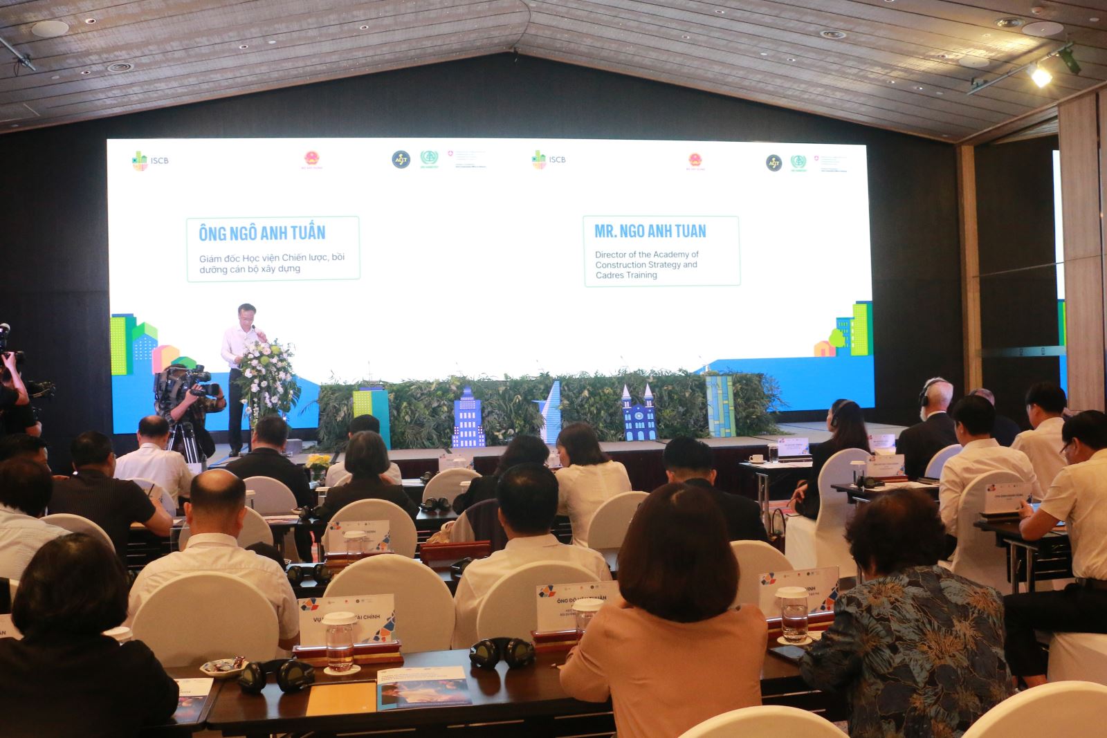Giám đốc Học viện Chiến lược, bồi dưỡng cán bộ xây dựng Ngô Anh Tuấn phát biểu khai mạc, điểm lại những chuyển biến tích cực của Dự án ISCB trong tiến trình thúc đẩy phát triển đô thị bền vững tại Việt Nam