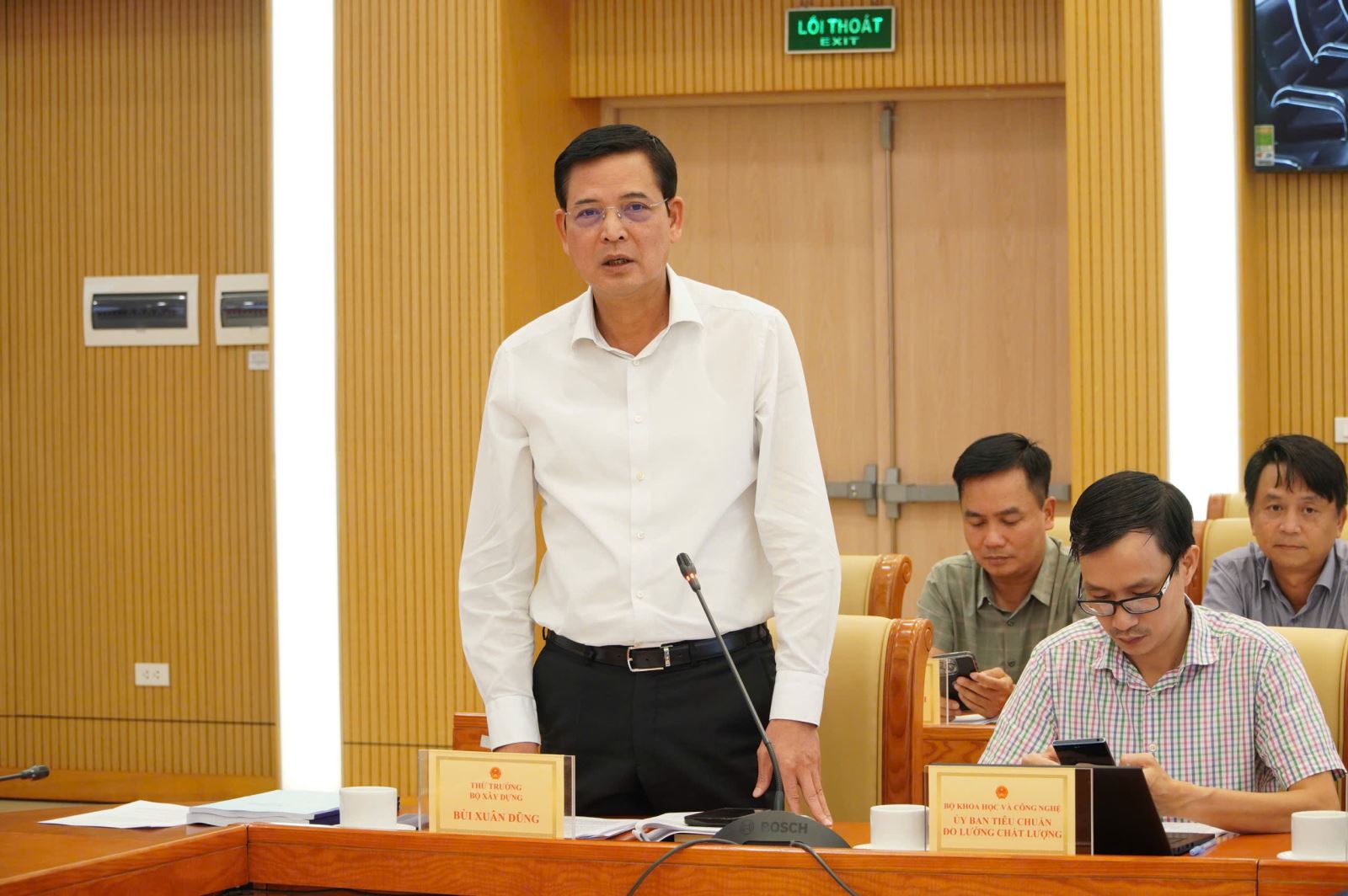 Báo cáo về hệ thống quy chuẩn, tiêu chuẩn ngành Xây dựng, Vụ trưởng Vụ Khoa học công nghệ. Môi trường và Vật liệu xây dựng (Vụ KHCNMT&VLXD) Lê Trung Thành cho biết, hệ thống tiêu chuẩn, quy chuẩn trong lĩnh vực xây dựng công trình đã bao trùm đầy đủ các bước khảo sát, thiết kế, thi công, an toàn xây dựng, vật liệu xây dựng, nghiệm thu, vận hành, bảo trì, môi trường xây dựng.