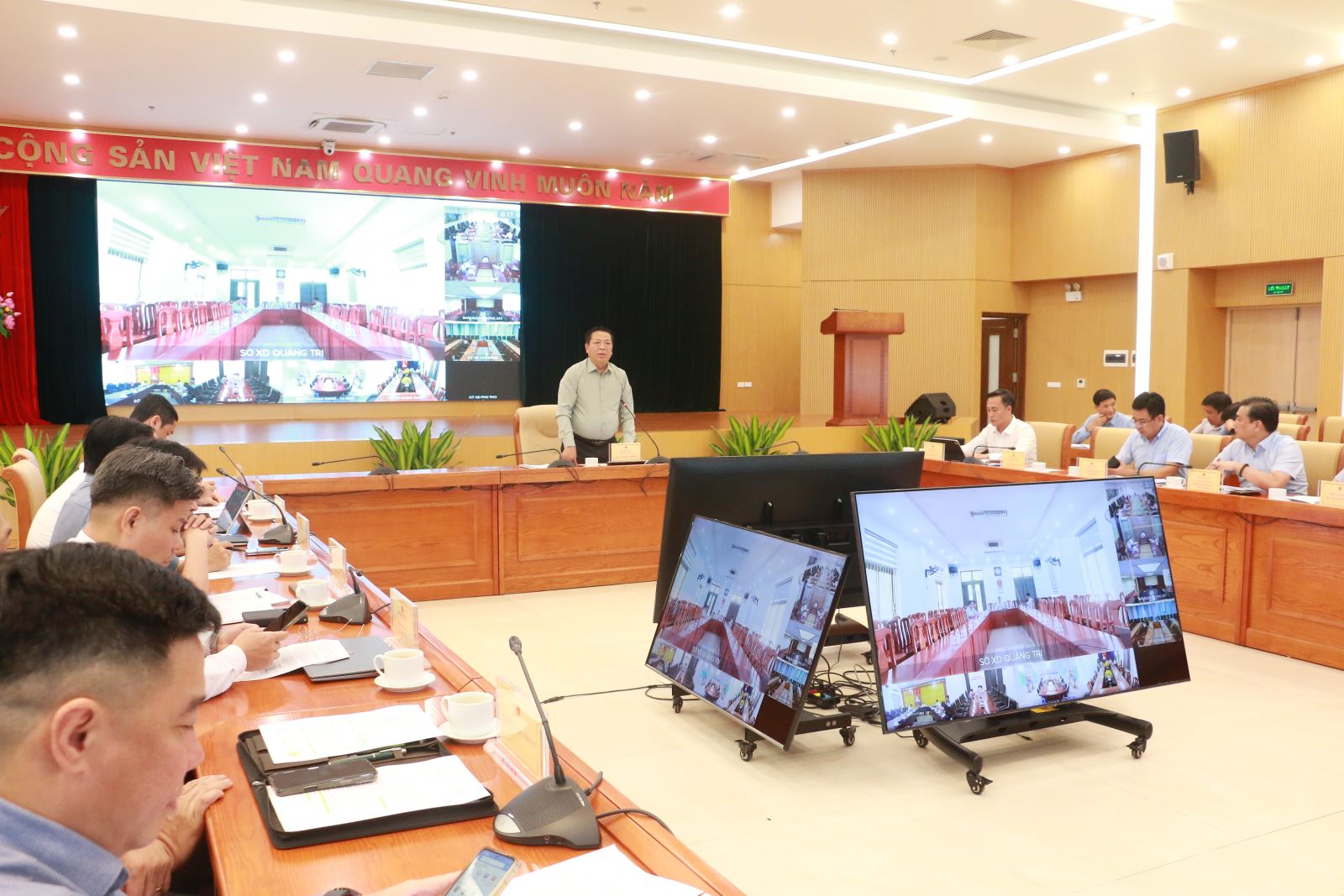 Tham dự cuộc họp có các đồng chí: Thứ trưởng Nguyễn Việt Hùng; lãnh đạo các cơ quan, đơn vị Ban trực thuộc Bộ Xây dựng; các Sở Xây dựng: Quảng Trị, Lạng Sơn, Lào Cai, Đồng Tháp, Hà Tĩnh, Cao Bằng, Phú Thọ, Đà Nẵng, Ninh Bình, Ban QLDA công trình giao thông và nông nghiệp phát triển nông thôn Đắk Lắk và các doanh nghiệp, nhà thầu tham gia dự án.