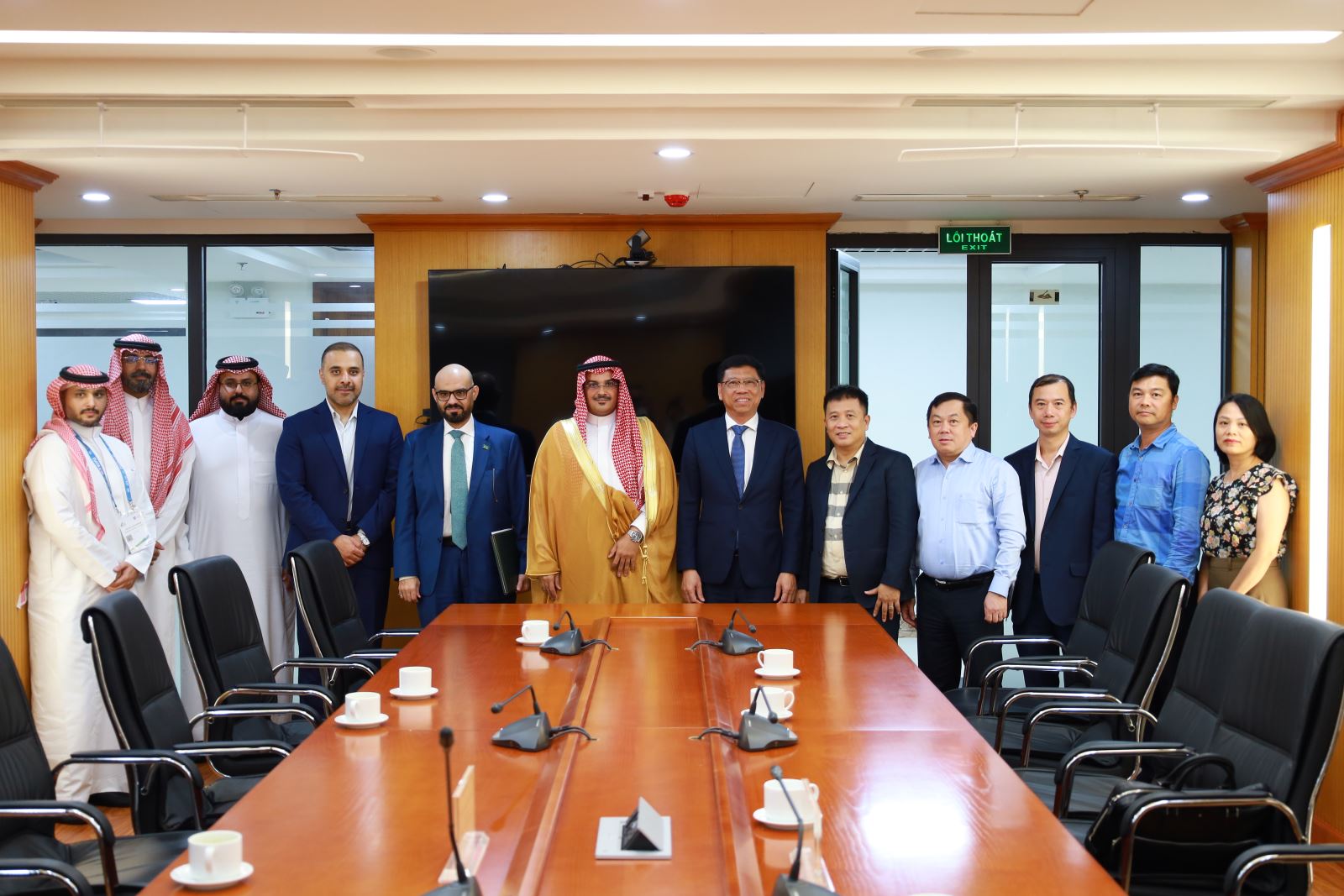 Thứ trưởng Nguyễn Xuân Sang và Thứ trưởng Musa bin Ahmed Al-Barqi chụp ảnh lưu niệm tại buổi làm việc