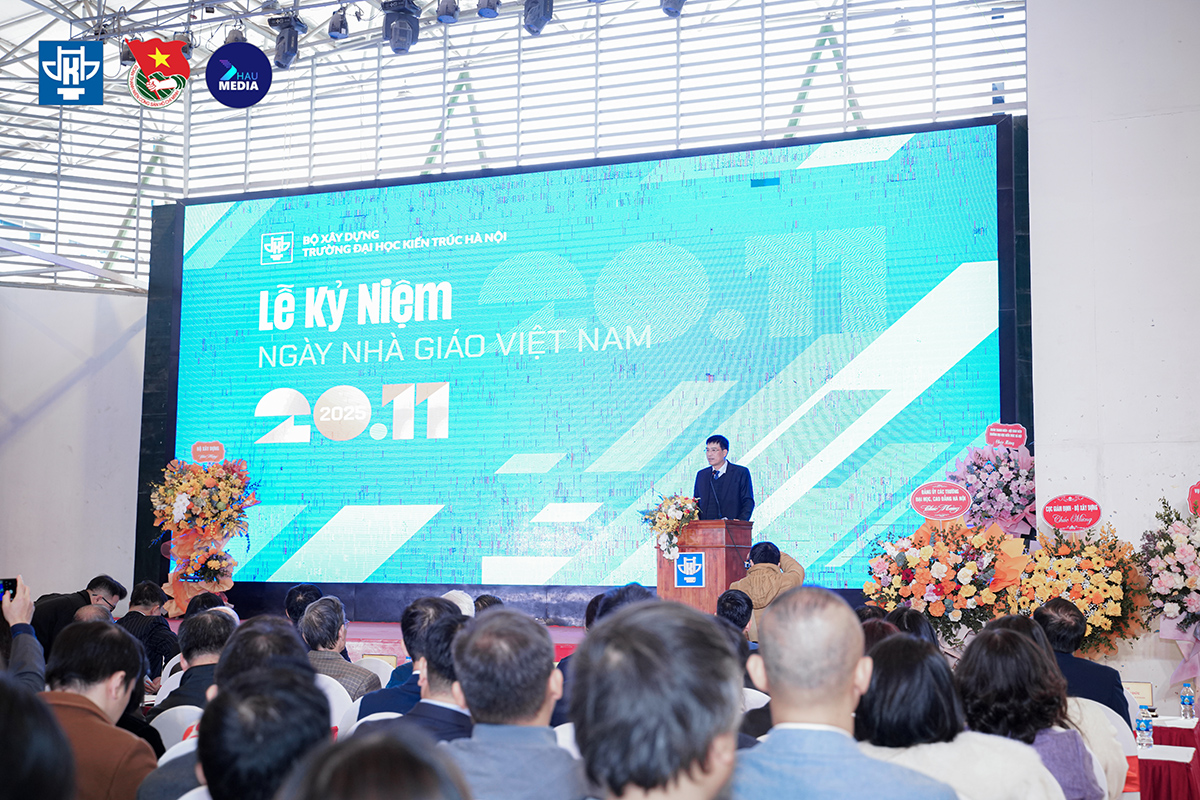 Hòa chung không khí tri ân các thầy cô giáo trên cả nước, sáng ngày 20/11/2025, Trường Đại học Kiến trúc Hà Nội long trọng tổ chức Lễ kỷ niệm 43 năm Ngày Nhà giáo Việt Nam (20/11/1982 - 20/11/2025). Chương trình nhằm tôn vinh đội ngũ nhà giáo, biểu dương các điển hình tiên tiến và ghi nhận những thành tích nổi bật trong công tác đào tạo, nghiên cứu khoa học và đổi mới sáng tạo của Nhà trường.