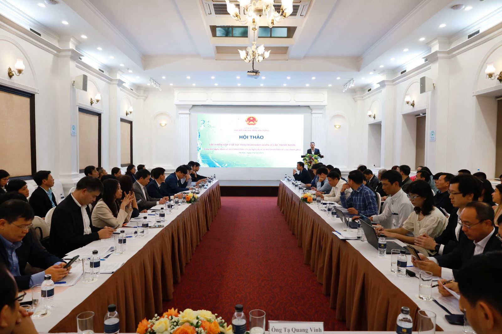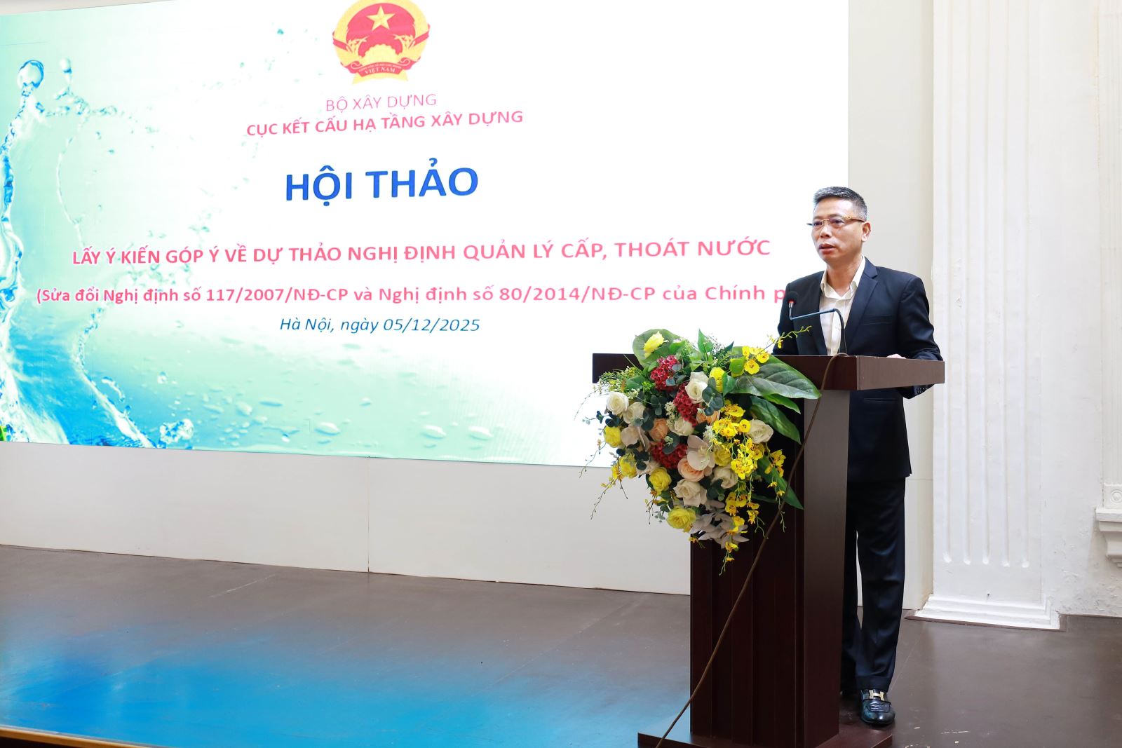 Ngày 5/12/2025, tại Hà Nội, thực hiện chỉ đạo của Bộ Xây dựng, Cục Kết cấu hạ tầng xây dựng tổ chức hội thảo Lấy ý kiến góp ý về dự thảo Nghị định Quản lý cấp, thoát nước (sửa đổi Nghị định số 117/2007/NĐ-CP và Nghị định số 80/2014/NĐ-CP của Chính phủ). Hội thảo có sự tham dự của đại diện các bộ, ngành, địa phương; chuyên gia các hội, hiệp hội và đại diện doanh nghiệp trong lĩnh vực cấp, thoát nước. Cục trưởng Cục Kết cấu hạ tầng xây dựng Tạ Quang Vinh chủ trì hội thảo.