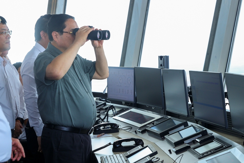Thủ tướng thăm đài quan sát không lưu- bộ não của sân bay - Ảnh: VGP/Nhật Bắc