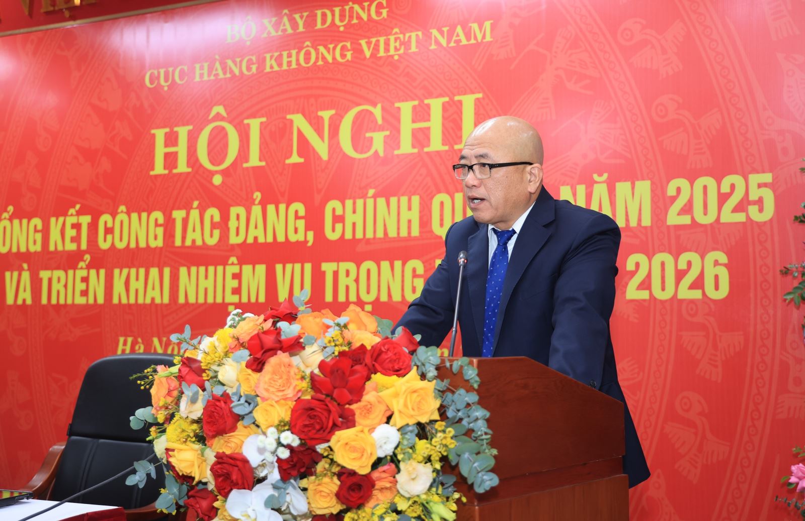 Trước đó, báo cáo tại Hội nghị, Phó Cục trưởng Cục Hàng không Việt Nam Hồ Minh Tấn cho biết: Năm 2025, được sự quan tâm, chỉ đạo sát sao, trực tiếp, toàn diện của Đảng ủy, Lãnh đạo Bộ Xây dựng, Cục Hàng không đã tổ chức triển khai thực hiện kịp thời, quyết liệt, linh hoạt và hiệu quả các nhiệm vụ được giao; được Ban Thường vụ Đảng ủy Bộ Xây dựng ghi nhận, đánh giá cao, trong đó có nhiều kết quả nổi bật.
