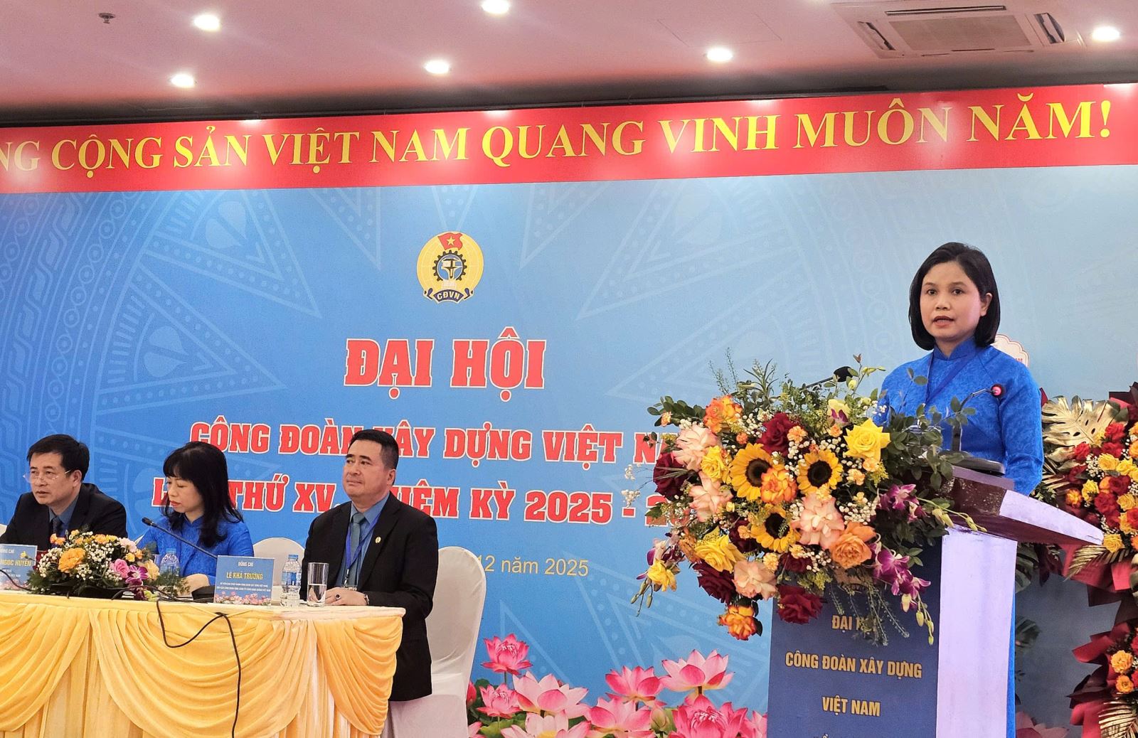 Phó Chủ tịch Âu Thị Định báo cáo hoạt động nhiệm kỳ XIV của Công đoàn Xây dựng Việt Nam