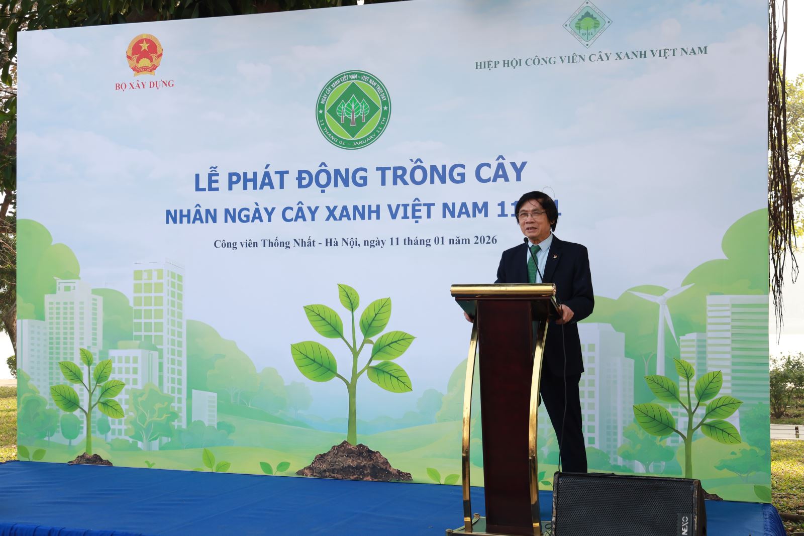 Phát biểu tại Lễ phát động, được sự ủy quyền của lãnh đạo Bộ Xây dựng, Cục trưởng Cục Kết cấu hạ tầng xây dựng Tạ Quang Vinh cho biết, ngày 9/10/2025, Chính phủ đã ban hành Nghị định số 258/2025/NĐ-CP về quản lý công viên, cây xanh, mặt nước, trong đó tại khoản 4 Điều 10 chính thức quy định lấy ngày 11/1 hằng năm là “Ngày Cây xanh Việt Nam”. Việc xác lập một ngày kỷ niệm mang tầm quốc gia dành riêng cho cây xanh thể hiện rõ quan điểm nhất quán của Đảng, Nhà nước trong việc coi hệ thống cây xanh, công viên và mặt nước là một cấu phần hạ tầng thiết yếu, gắn chặt với chất lượng sống của người dân và năng lực phát triển bền vững của các đô thị Việt Nam.