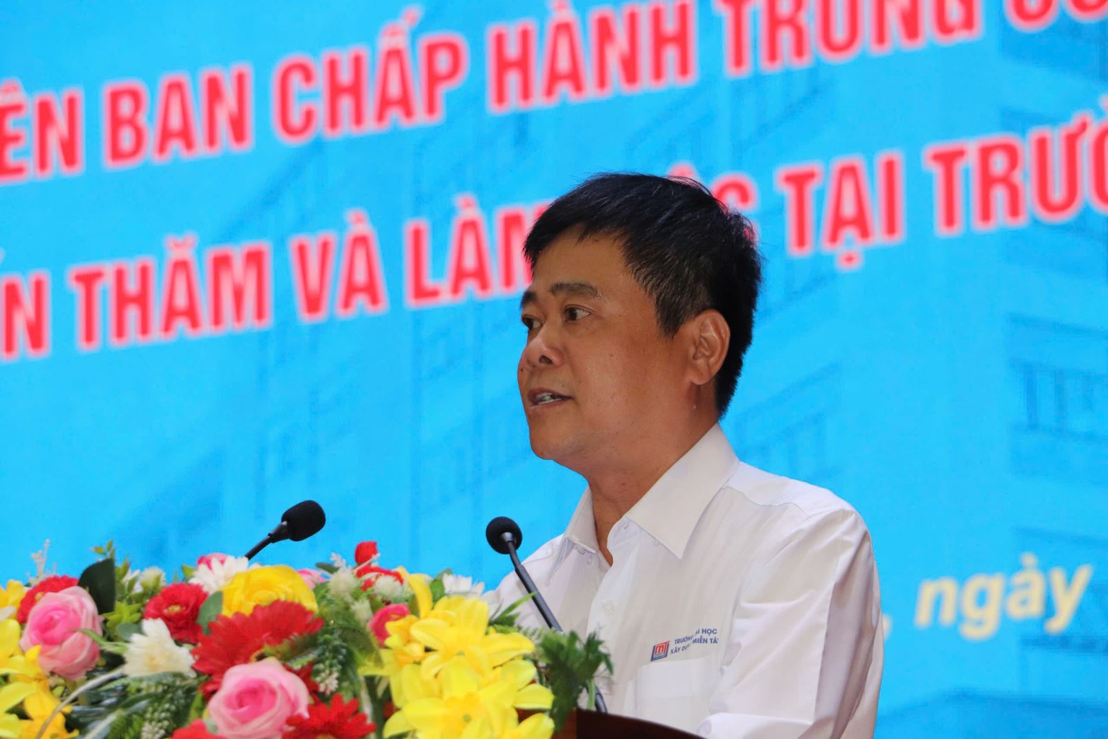 Sau khi nghe lãnh đạo nhà trường báo cáo, Bộ trưởng Trần Hồng Minh ghi nhận những nỗ lực của tập thể cán bộ, giảng viên và người lao động của nhà trường trong thời gian qua.
